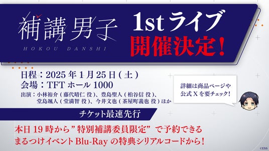 ※チケット最速先行は「『補講男子』第1回まるつけイベント~起立、俺、着席~Blu-ray封入シリアルコード」での抽選となりますので、ご注意ください。