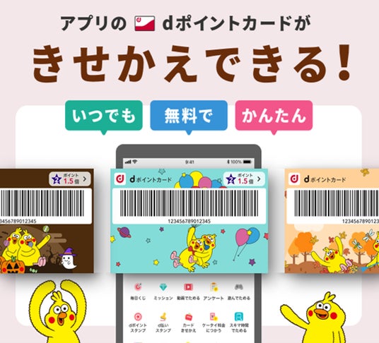 ※4 「dポイントクラブ」アプリ内の「カードきせかえ」機能専用ページ:https://dpoint.docomo.ne.jp/guide/howto_dpoint/app/card_kisekae/index.html