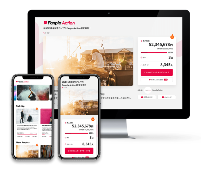 この度オープンしたクラウドファンディングサービス『Fanpla Action』は、従来の、主催者が実現したいことに支援者が協力するコンセプトだけではなく、アーティストとファンが一緒になって実現したいアイデアに向かって"アクション"する、「共創」をコンセプトとしており、クラウドファンディングをファンサービスとして利用いただくことを目的としております。