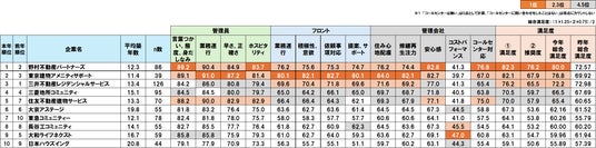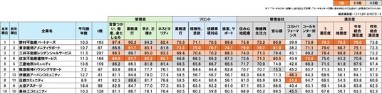 <図表1:管理会社満足度 全体ランキング 上位10社 主要項目抜粋>