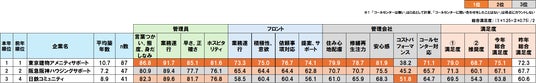 <図表2:管理戸数10万戸未満の部門 満足度ランキング 上位3社 主要項目抜粋>
