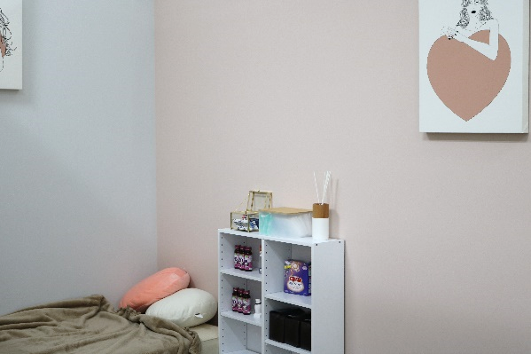 多くの女性社員が在籍する中、急な体調不良の時でも安心してゆっくり休めるように、女性用休憩スペースを設置しました。