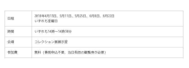 さまざまな切口で学芸員やエデュケーターが作品の見どころや楽しみ方を紹介します。