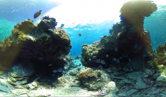 沖縄県の青く綺麗な海をダイビングしているかのように楽しむ事ができるVRコンテンツを無料で体験できます。コンテンツの中では、今日問題になっている赤土の流出についても触れています。※7歳以上利用可、その他利用制限あり。