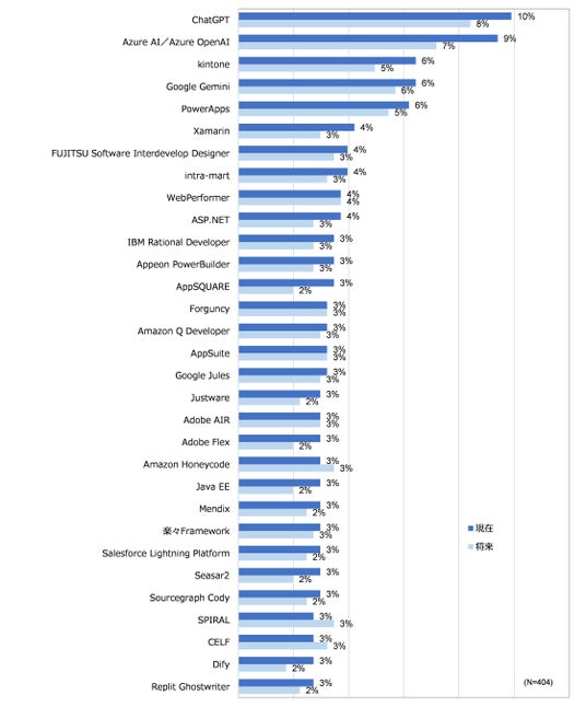 - 市民開発に利用しているツールで最も多いのは「ChatGPT」