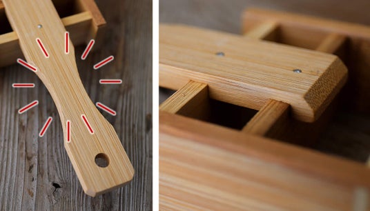 製造を支えているのは、熟練の職人による手仕事です。鬼おろし本体は、厚みのある孟宗竹を割り、削り出し、磨き上げて作られています。さらに鋭角な鬼歯の部分も、しっかりとはめ込みで固定された頑丈な構造となっており、見た目の迫力だけでなく、日々の調理に安心して使える丈夫さも兼ね備えています。持ち手の握りやすさや、吊るして保管できる穴など、使い勝手にも細やかな工夫を重ねてきました。