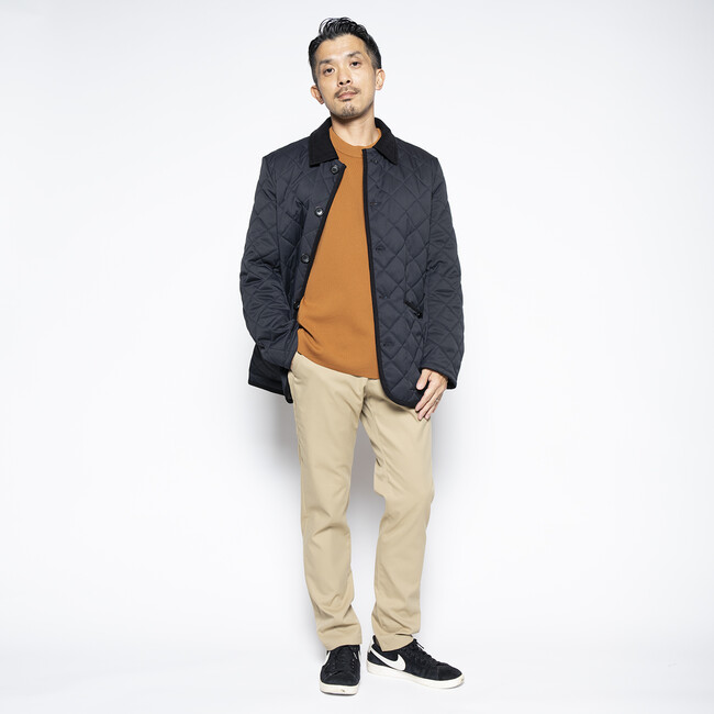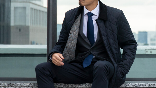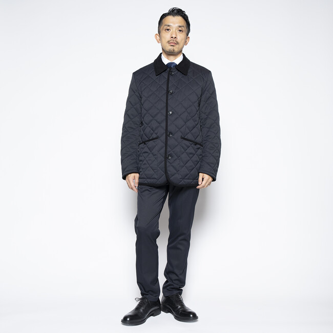 この度、2022年12月16日(金)10:00より、自社開発の高機能素材「ultimex」を使用した、軽量かつ保温性に優れた中綿アウター「洗えるキルティングジャケット」を新発売いたします。流行や年齢に左右されないベーシックな形でジャケットスタイルやスーツスタイル、ニットやトレーナーの上にも着用でき、ON/OFF対応できる仕様になっています。また、表側の襟とパイピング部分にはコーデュロイ生地を使用、裏側はグレンチェック柄にすることで、一見シンプルに見えるアウターにギミックを利かせました。