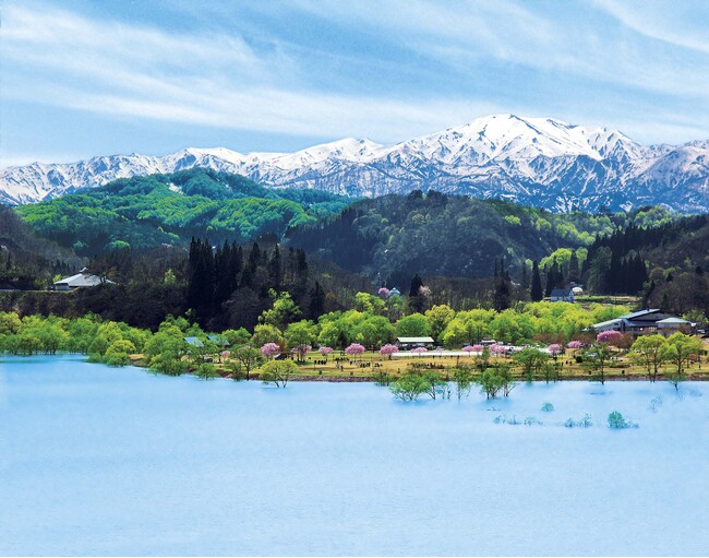 飯豊町は、山形県の南西部に位置する人口6,500人余りの小さな町です。町の80%を緑豊かな森林が占め、東北地方でも有数の豪雪地帯として知られています。町名にも由来する飯豊連峰から流れる清流白川が形成した扇状地に、農地や屋敷林に囲まれた住居が点在する田園散居集落が特徴的な景観を形成しています。