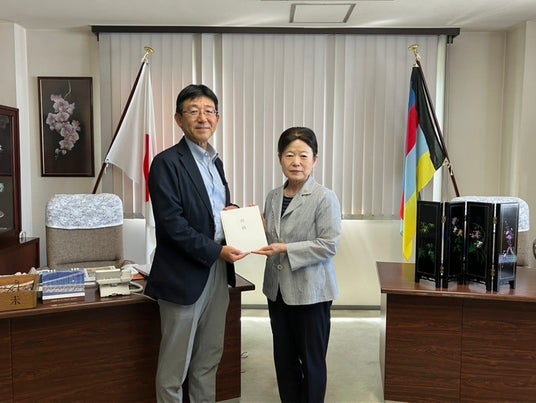 公益財団法人 オイスカ 理事長 中野悦子氏(右)と弊社取締役常務執行役員 前田昭夫(左)