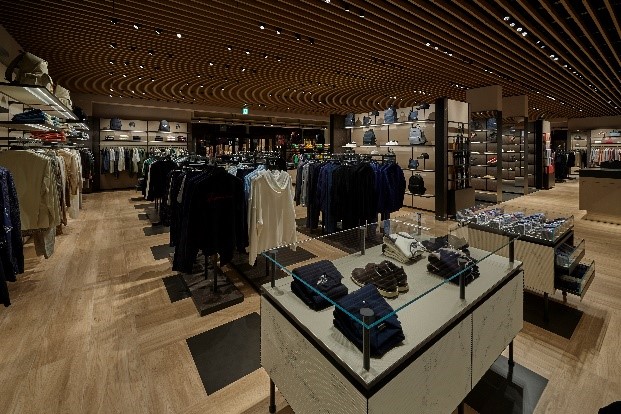 「グリーン コンセプト」はアルマーニが企業SDGs活動の1つとして始動したプロジェクトで、アウトレット店舗を対象このコンセプトの店舗を関西地区に出店するのは初めて、日本においては3店舗目となります。面積は136坪とアルマーニのアウトレットの中でも国内最大です。に2019年より世界各国で実施しています。2023年年末までには全世界で36店舗が同コンセプトで展開されます。