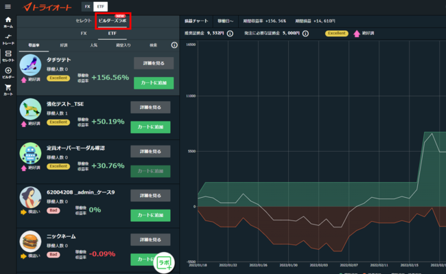 2022年3月26日(土)に、「ビルダーズラボ」機能がトライオートFXに続き、トライオートETFでもリリースされました。