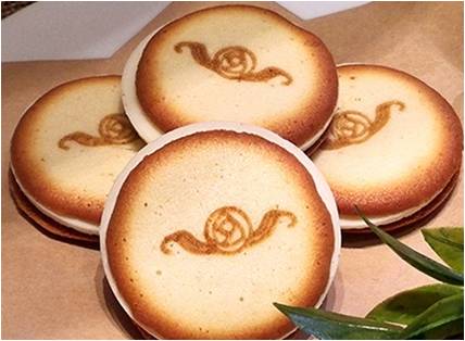 クッキーにチーズクリームとホワイトチョコをはさんだ口どけなめらかな一品です。