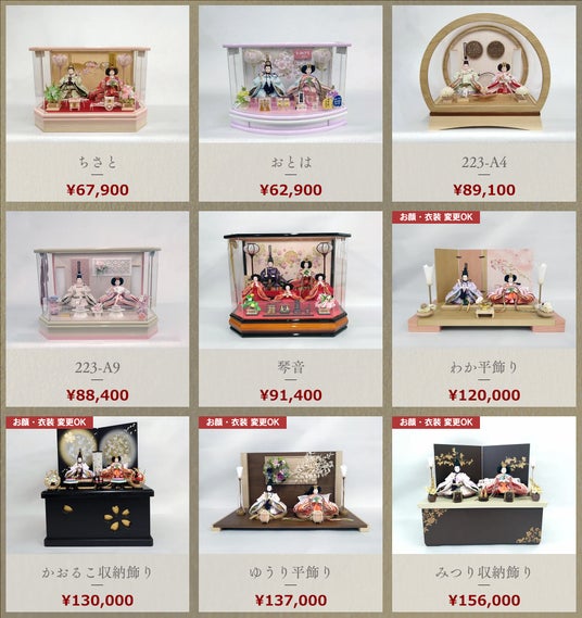 コラボサイトでは、コンパクトなひな人形を中心に販売中