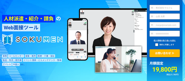 株式会社マルジュはこれまで自社開発をしたWEB面接ツールSOKUMEN(ソクメン)で派遣会社・人材紹介会社など多くの企業様の採用課題の解決サポートをしてまいりました。