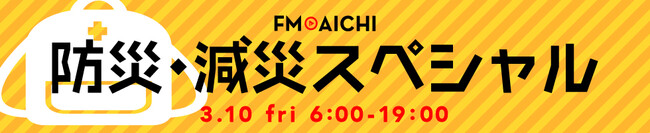 FM AICHIは、3月10日(金)「防災・減災スペシャル」をお送りします。南海トラフ地震など、いつ起きてもおかしくない大きな地震などの災害に備えて、日頃から身近に心がけることをリスナーの皆さんと一緒に考えていきます。