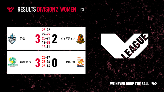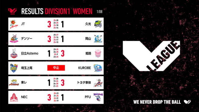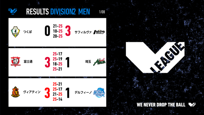 バレーボール国内最高峰リーグ V.LEAGUE【01月08日の試合結果】