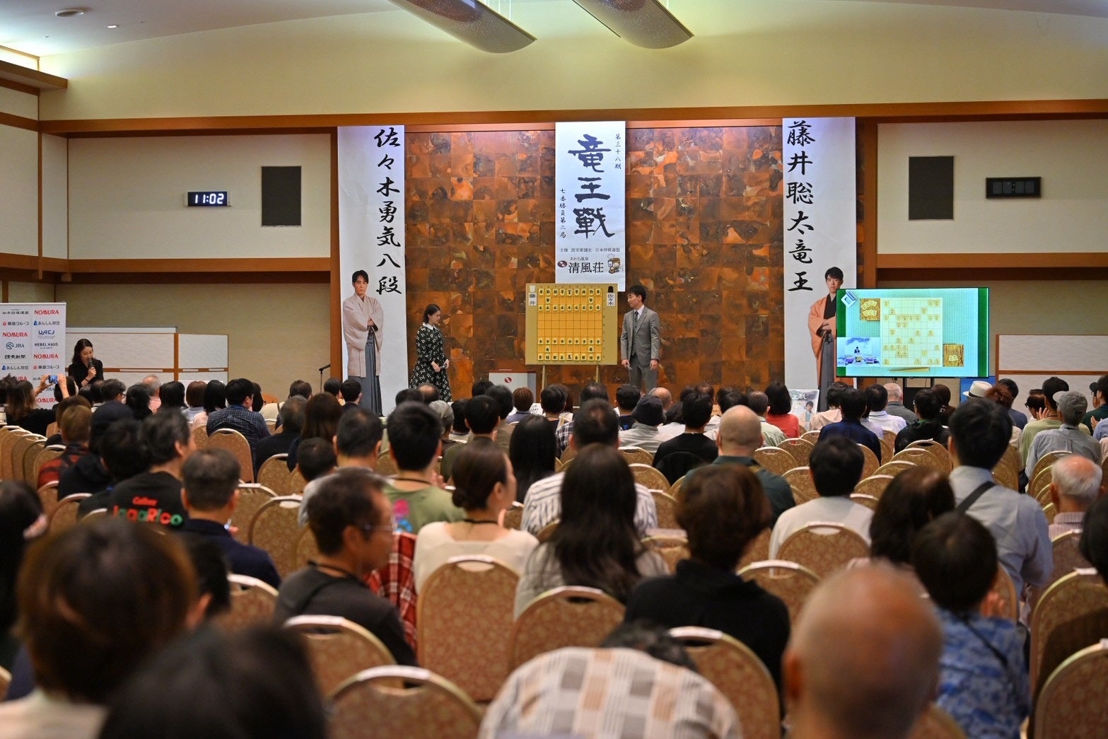 大会場には最後列まで観客が埋まり、歴史的な対局に熱い視線が注がれています。