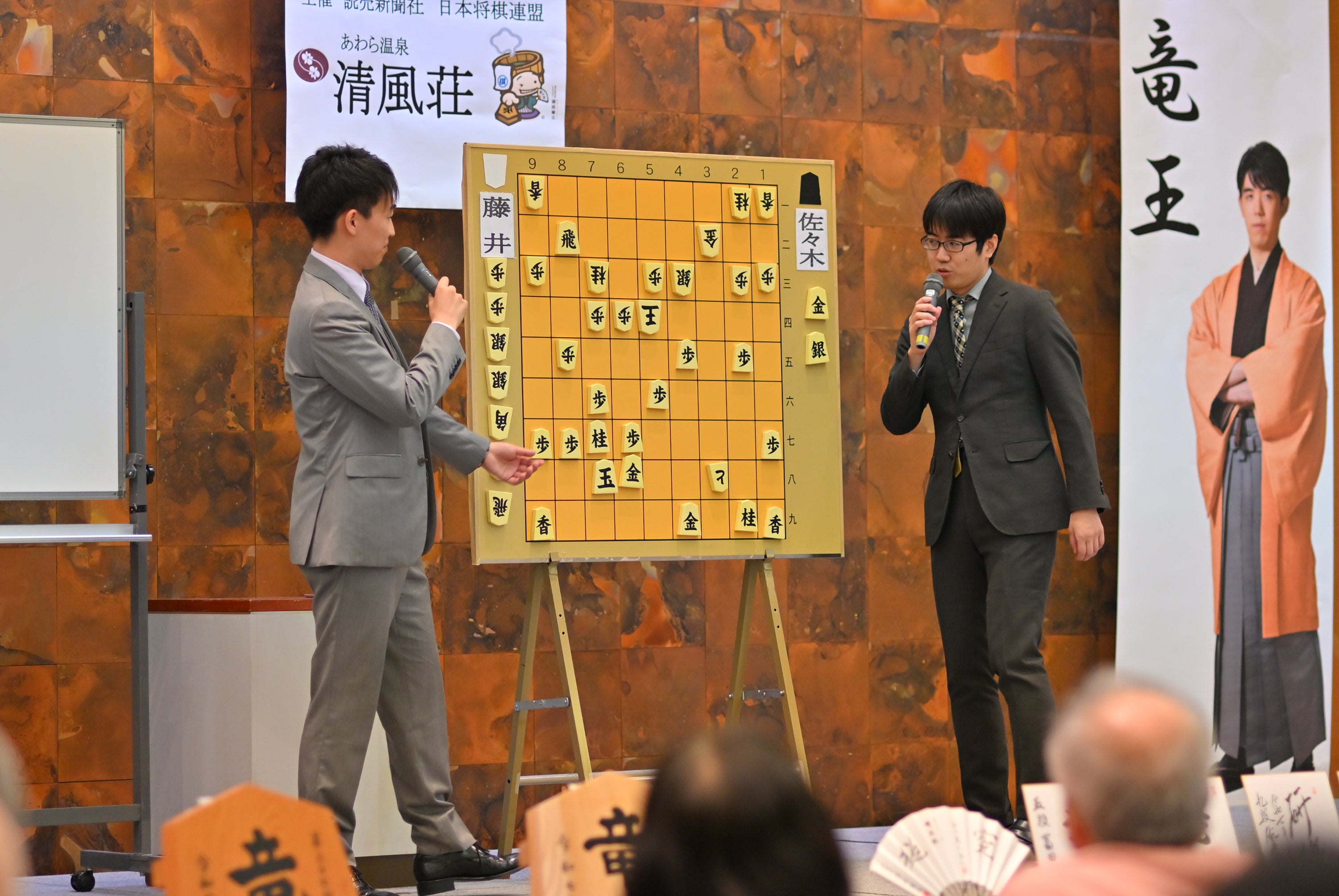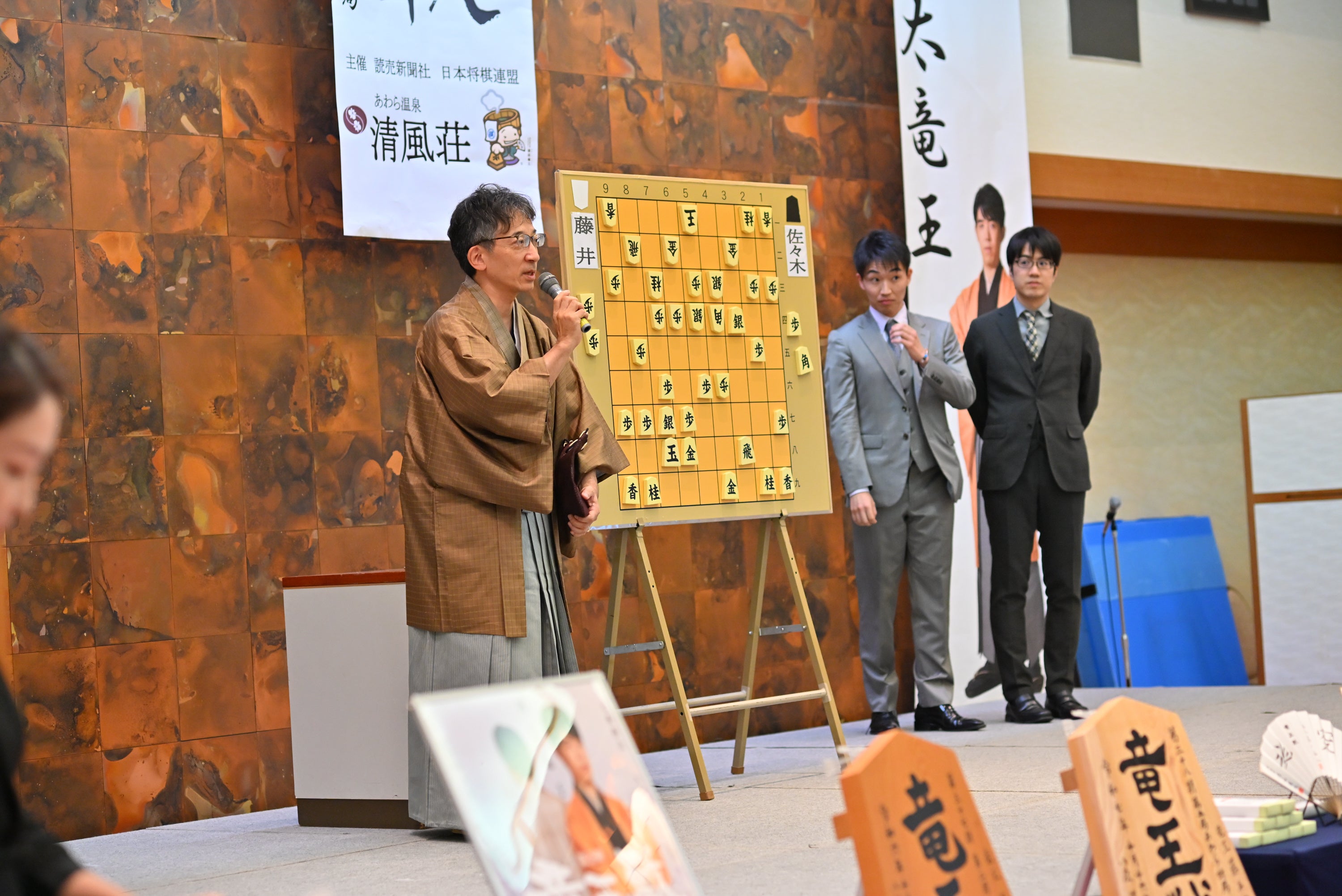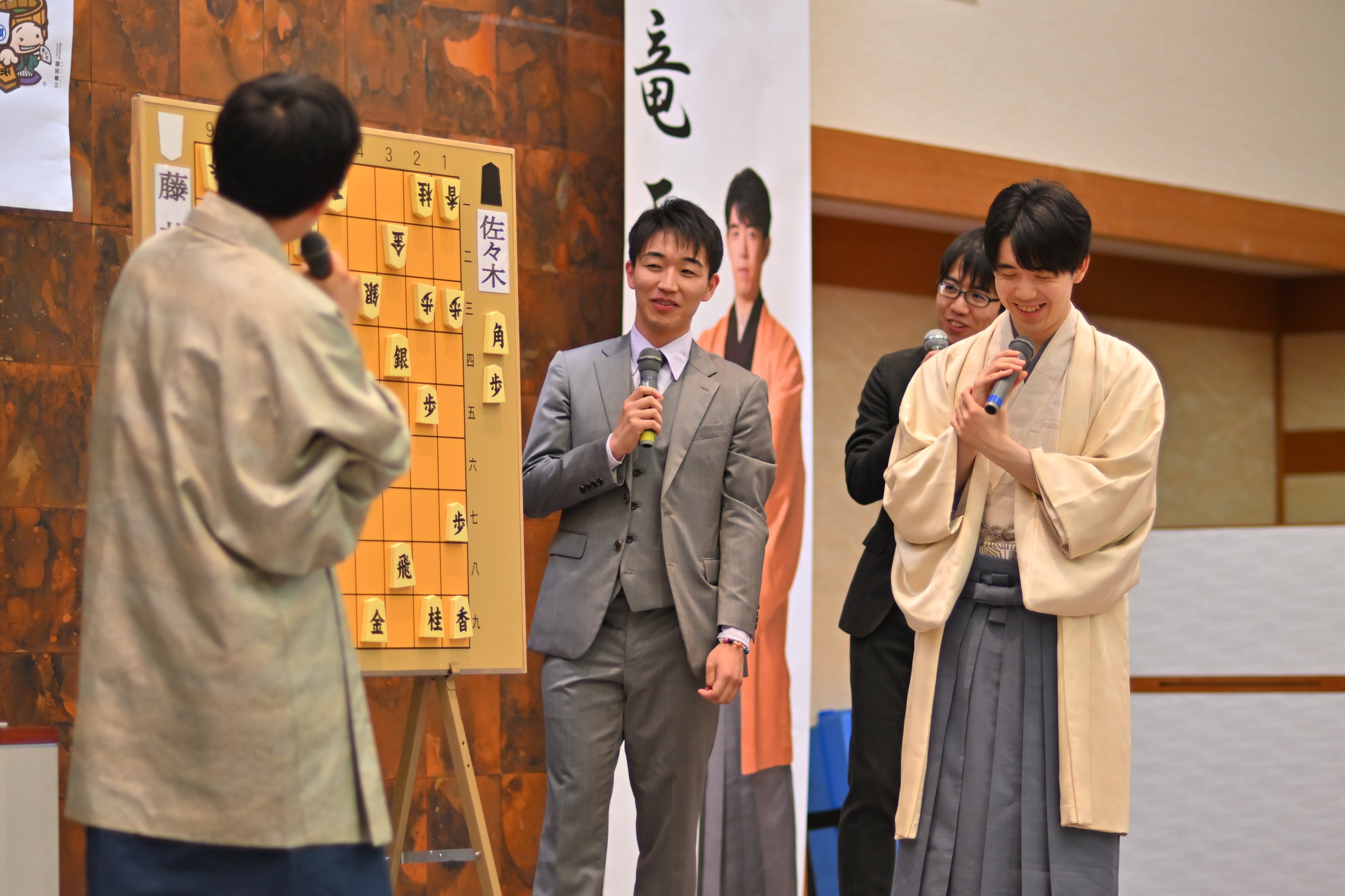 対局終了後には、藤井竜王と佐々木八段、立会人を務めた佐藤康光九段も登場。