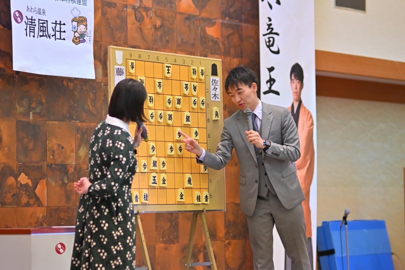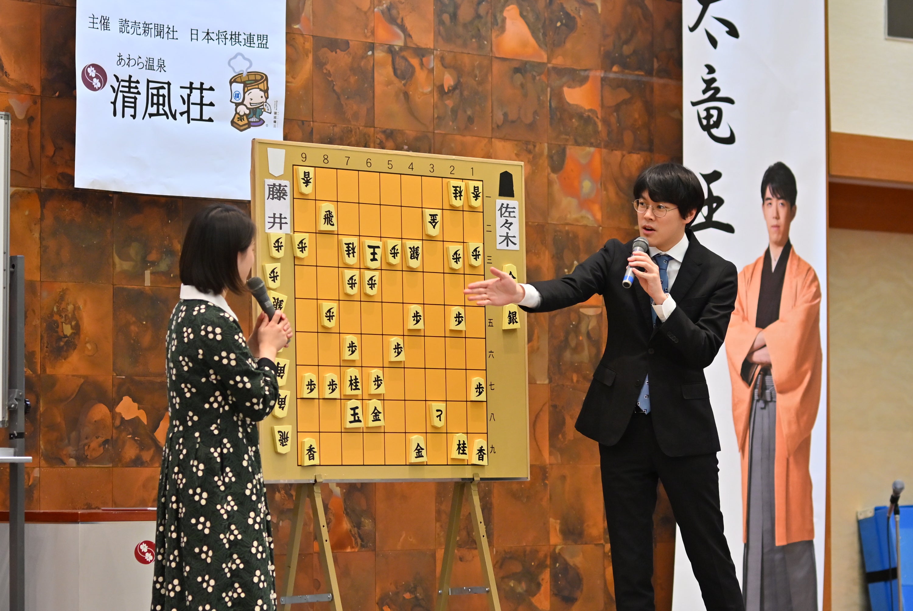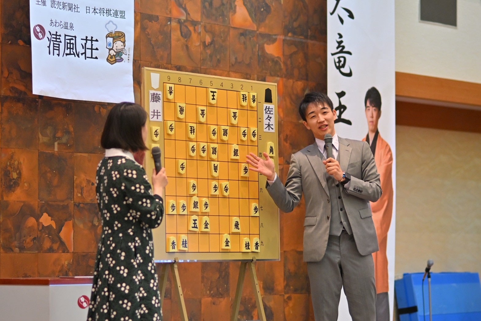 対局終了後には、藤井竜王と佐々木八段、立会人を務めた佐藤康光九段も登場。
