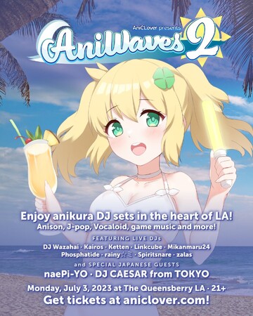 また、DJシーザーは、7月3日夜に、同じくロサンゼルスにて開催されたアニソンを中心としたDJイベント「AniWaves 2」へも出演している。