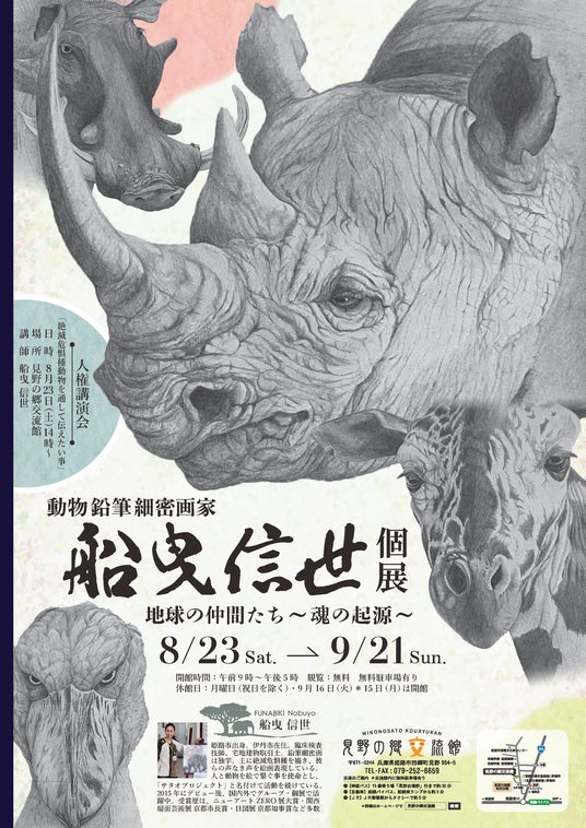 姫路市出身の船曳信世さんが絶滅危惧種の動物達を鉛筆だけで描いた作品約15点を展示します。