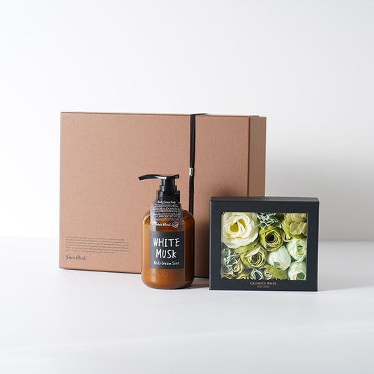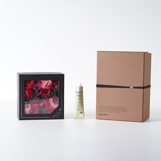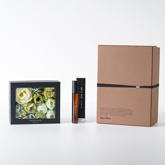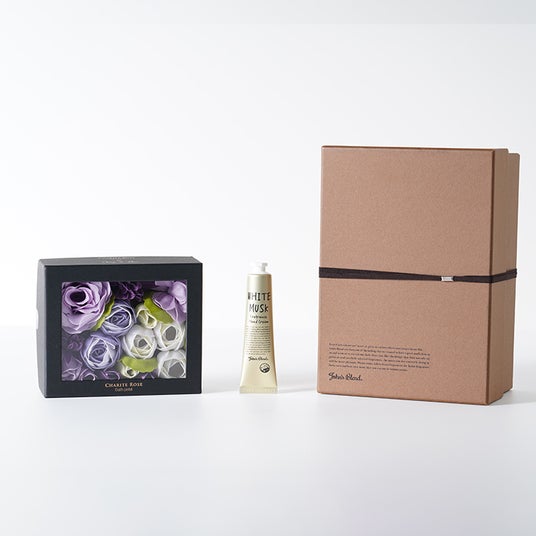 (右)シャリテローズ フラワーバスペタル John's Blend ボディクリームソープ ギフトボックスセット/¥4,840(税込)