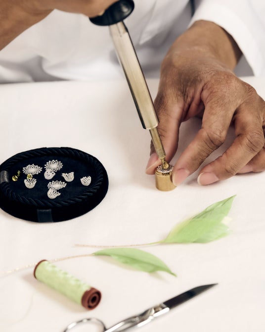 この夢を具現化するため、今回、メゾンは1956年以来パリの中心に工房を構える、名高く選ばれし刺繍メゾンであるアトリエ・ヴェルモンに制作を依頼しました。この控えめな佇まいの工房では、オートクチュールのトップメゾンのランウェイを支える、陰の職人たちに捧げられた伝説が紡がれています。