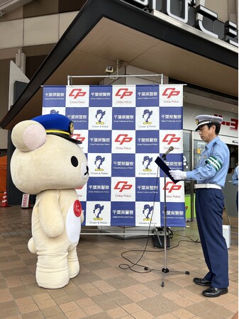 コリラックマは今回初めて警察の一日署長に就任し、署長委嘱式にて委嘱状を受け取ると、警察帽子をかぶった姿で写真撮影に応じ、訪れた方に交通安全を呼びかけました。