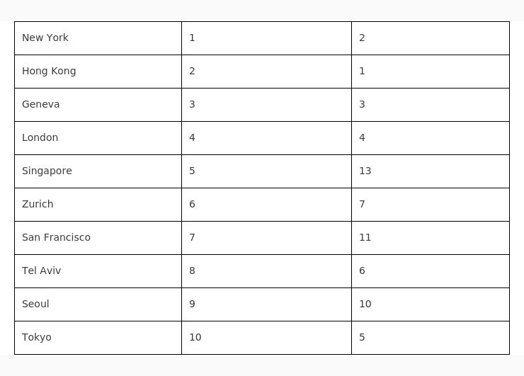 (出典:eca International「Hong Kong falls one place to become the second-most expensive location in the world」https://www.eca-international.com/news/june-2023/hk-falls-one-place-to-2nd-most-expensive-location)