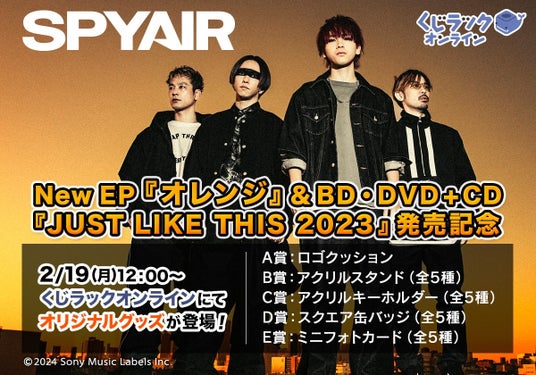 カルチュア・エンタテインメント株式会社(以下、CE)は、『SPYAIR』とコラボレーションした、ハズレ無しでオリジナルグッズがゲットできるオンラインくじ「くじラックオンライン」を2024年2月19日(月)より発売いたします。商品はSPYAIRメンバー4名のライブ写真やメンバー集合写真を使用した全5アイテム。さらに、くじ1枚ご購入ごとにWチャンス賞の抽選が行われ、当選した方は豪華サイン入りグッズが獲得できます。