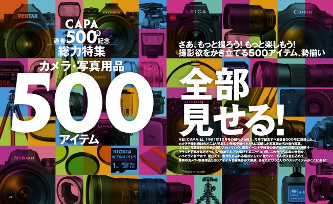 『CAPA』は1981年10月号の創刊から数え、今号で通巻500号に到達しました。そこで500号を記念して、編集部が厳選した撮影欲をかき立てる‟500アイテム”を一挙にご紹介します。