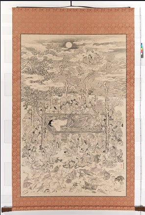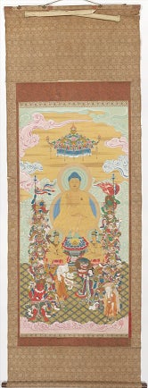 京都で描かれた寺院復興の軸「大般若釈迦十六善神図(だいはんにゃ しゃか じゅうろくぜんしんず)」「中台延命寺所蔵「大般若釈迦十六善神図」及び「釈迦涅槃図(しゃか ねはんず)」」より、中台延命寺所蔵