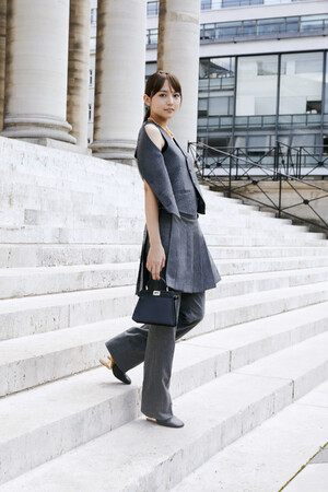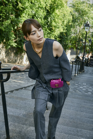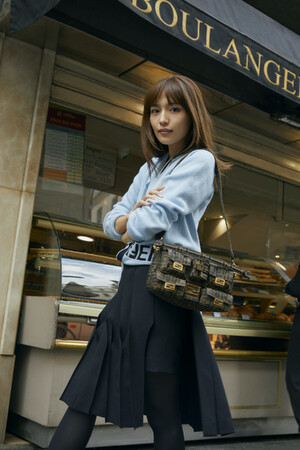 フェンディ 2023年秋冬 ウィメンズコレクションの最新ルックに合わせて彼女が選んだのは、同コレクションを象徴するメゾンのアイコニックな新作バッグ。柔らかな丸みを帯びたアウトラインに、ヴィンテージゴールドメタルの「FF」ロゴがエレガントなコントラストを生み出す新作のサッチェルバッグ「フェンディ カモン(FENDI C’mon)」は、2つのサイズをそれぞれショルダーバッグ、ウエストバッグとして使い分け、その高い機能性を体感しました。またメゾンを代表する「ピーカブー アイシーユー プチ(Peekaboo ISeeU Petite)」、「バゲット(Baguette)」、「サンシャイン ショッパー(Sunshine Shopper)」を携えながら、美しいパリの街を巡りました。