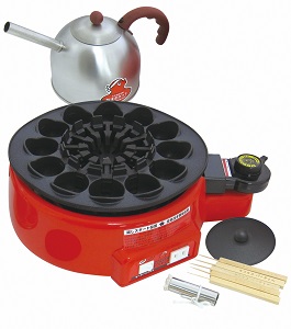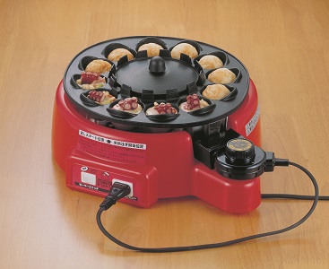 たこ焼きの生地をつぼの中に流し入れ、モータースイッチをONにするだけで、まん丸たこ焼きが出来上がり。
