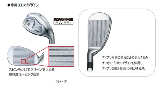『BX2HT IRON』は接点の科学から生まれた新構造のSP-COR(サスペンションコア)と高強度Lフェースにより高い 飛距離性能とやわらかい打感を追求しました。またスピンをかけてグリーンで止める高精度ミーリング設計を採用した専用 ウエッジ(AW、SW)もラインアップしています。
