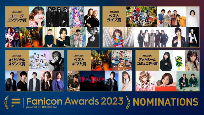 今回は11賞の中から5賞、「アットホームコミュニティ賞」「ベストギフト賞」「ユニークコンテンツ賞」「オリジナルスタンプ賞」「ベストライブ賞」を受賞したコミュニティを発表。受賞アイコンから届いた喜びのコメントはFanicon Awards 2023特設サイト(https://fanicon.net/icons/fanicon-award/)でご覧いただけます!