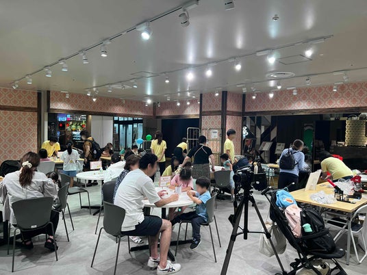 本イベントでは、夏休みの期間に家族で参加していただく場をつくることを目的とし、館内を歩きながら2つの謎を解く「ナゾトキ」、塗り絵やイラストを描いてオリジナルの缶バッジを作成できる「缶バッジ作成ワークショップ」、「ニフティキッズ」のゲームコンテンツの体験コーナーを用意しました。イベントに参加いただいた方を対象に実施した抽選では、その場で撮影した写真が缶バッジとなる賞も用意し、多くの子どもたちや保護者の皆さまに喜んでいただきました。