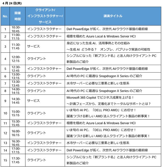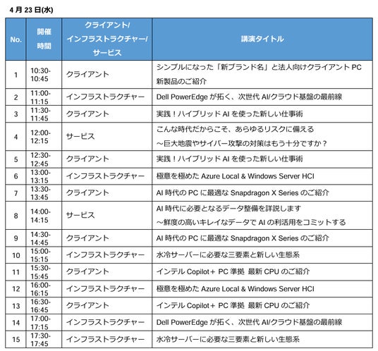 デル・テクノロジーズ株式会社(本社:東京都千代田区、代表取締役社長:大塚 俊彦、以下、デル・テクノロジーズ URL:https://www.dell.com/ja-jp)は、2025年4月23日(水)から25日(金)まで東京ビッグサイト 東1~8ホールで開催される『Japan IT Week 春 2025』に出展します。