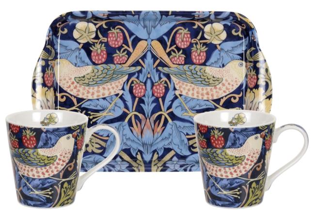 ●『Morris&Co. for ピンパーネル』いちごどろぼう ブルー ペアマグ&トレイセット(マグ:磁器、トレイ:メラミン樹脂/マグ:180ml、トレイW21×D14.5cm) 3,850 円【限定20 点】