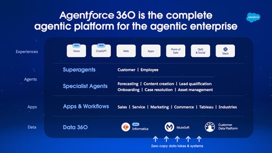 エクスペリエンスレイヤー:最後に、Agentforceは顧客と従業員が存在する場所に配置される必要があります。エクスペリエンスレイヤーにより、あらゆる従業員や顧客チャンネルへAgentforceを展開することが可能となります。フリーダイヤル番号での音声対応やウェブサイト上のチャット、あるいはSlackやChatGPTへの直接組み込みなど、どのような形態であっても、AIエージェントは信頼性の高いコンテキストとセキュリティを常に保持します。