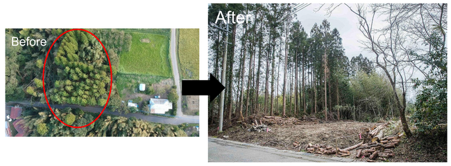 同プロジェクトが発足した2019年、千葉県では同年10月の台風21号などによる記録的大雨で河川が氾濫し、多くの被害をもたらしました。特に長柄町においては、杉が道や家に倒れて電線や道を寸断し、大規模な停電を引き起こすなど、くらしにも大きな影響が及びました。そんな荒廃杉林の一部を活用して家を建てることで、地域活性化や持続可能なまちづくりに繋げたいという想いから生活総合情報メディア「くふうLive!」※1の編集部が立ち上がり、「Team くふうLive!」※2 として活動するメンバーに声をかけて「DIY女子部」を結成。長柄町の地元企業やNPO法人「ふるさとネッツ」など、多くの方からのサポートを受けながらメンバーと編集部が中心となって「女子がゼロから家づくり@千葉県長柄町」プロジェクトを進めてきました。荒廃杉林の木々を伐採し土地を整え、伐採した木を活用して柱などに使う木材を作るところからスタートし、2021年8月には上棟式を実施するなど、地域に根付いた官民一体のSDGsプロジェクトとして多くの注目を集めました。