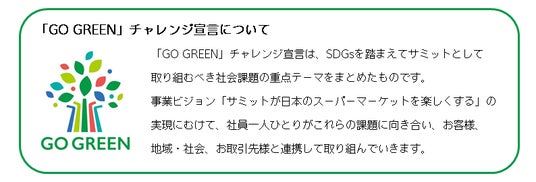 当社は、SDGsを踏まえて、サミットとして取り組むべき社会課題を5つの重点テーマにまとめ、「『GO GREEN』チャレンジ」として宣言し、様々な課題に取り組んでいます。