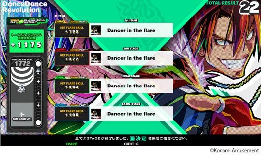 「トータルフレアスキル」はさまざまな楽曲や譜面をプレーすることで上げることができます。