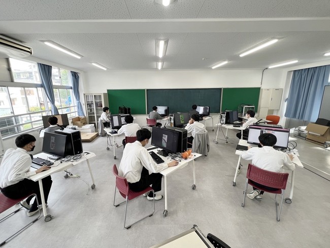 工業技術科の1教室を今年度よりDXLabと名前を改称し、製図とIntel SteamLabにてご提供いただいた高性能PC10台、3Dプリンターを設置しました。設置環境は一人ひとりでの作業やグループでの作業にも対応できるように机を配置しました。ご提供頂いた機器の他、カッティングプロッターや大判プリンター、サンドブラストスペースをはじめ、本校の工業技術科の設備棟では様々な機器を使えるように整備をしております。