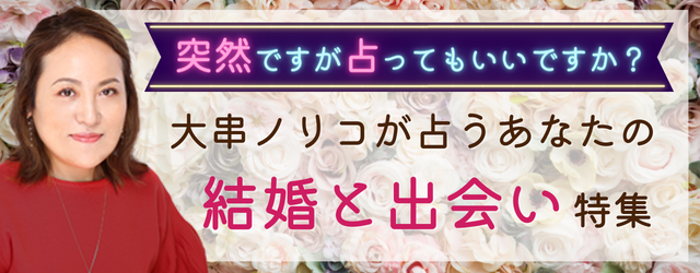 ※「結婚と出会い特集」をご覧いただくには、公式サイト『大串ノリコの占い』(https://ogushi-noriko.net)への会員登録が必要です。(月額330円)