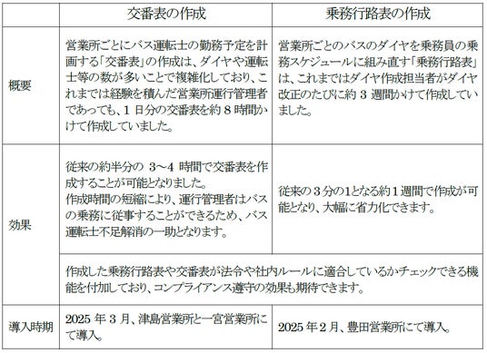 乗合バス「交番表」、「乗務行路表」のAI自動作成システム「Optium」