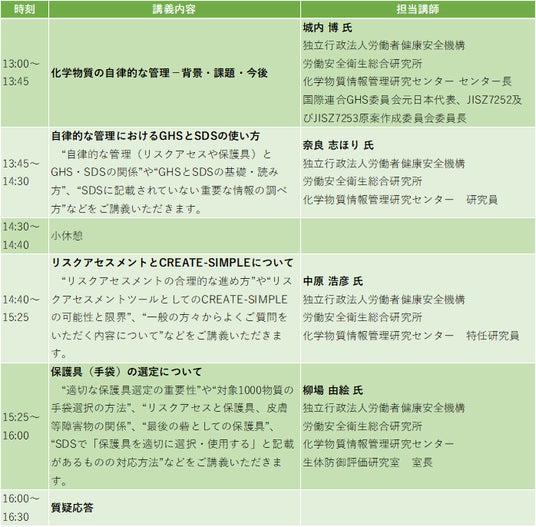 GHS・SDSの正しい使い方、CREATE-SIMPLEの使い方や可能性と限界や正しい保護具選定の理解といった、多くの方が気になっている内容について解説をいたします。