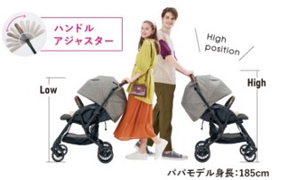 ※1 A型両対面オート4輪ベビーカー/重量5.8kg以下/ハンドル角度調整付/2022年国内販売品の商品群において。