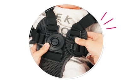 左右の肩と腰ベルトをまとめるベルトカバーにより、シートベルトの付け外しがラクラク。