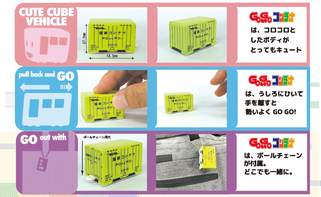 コロコロとしたボディがとってもキュート!うしろにひいて手を離すと勢いよくGOGO!ボールチェーン付属でいつでもどこでもゴーゴーコンテナ国鉄6000形と一緒!